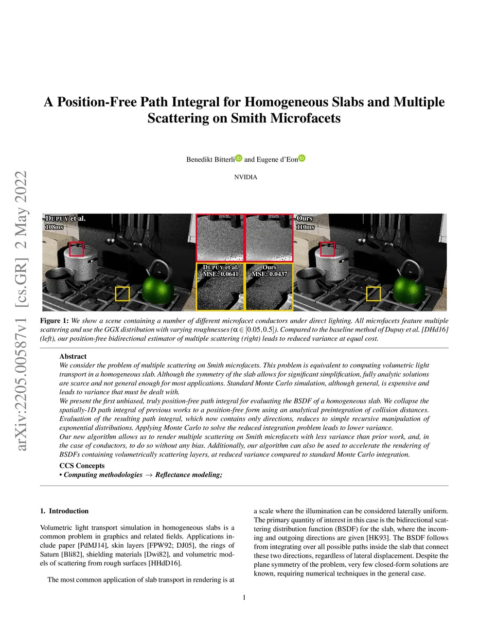 We consider the problem of multiple scattering on Smith microfacets. This problem is equivalent to computing volumetric light transport in a homogeneous slab. Although the symmetry of the slab allows for significant simplification, fully analytic solutions are scarce and not general enough for most applications. Standard Monte Carlo simulation, although general, is expensive and leads to variance that must be dealt with. We present the first unbiased, truly position-free path integral for evaluating the BSDF of a homogeneous slab. We collapse the spatially-1D path integral of previous works to a position-free form using an analytical preintegration of collision distances. Evaluation of the resulting path integral, which now contains only directions, reduces to simple recursive manipulation of exponential distributions. Applying Monte Carlo to solve the reduced integration problem leads to lower variance. Our new algorithm allows us to render multiple scattering on Smith microfacets with less variance than prior work, and, in the case of conductors, to do so without any bias. Additionally, our algorithm can also be used to accelerate the rendering of BSDFs containing volumetrically scattering layers, at reduced variance compared to standard Monte Carlo integration.