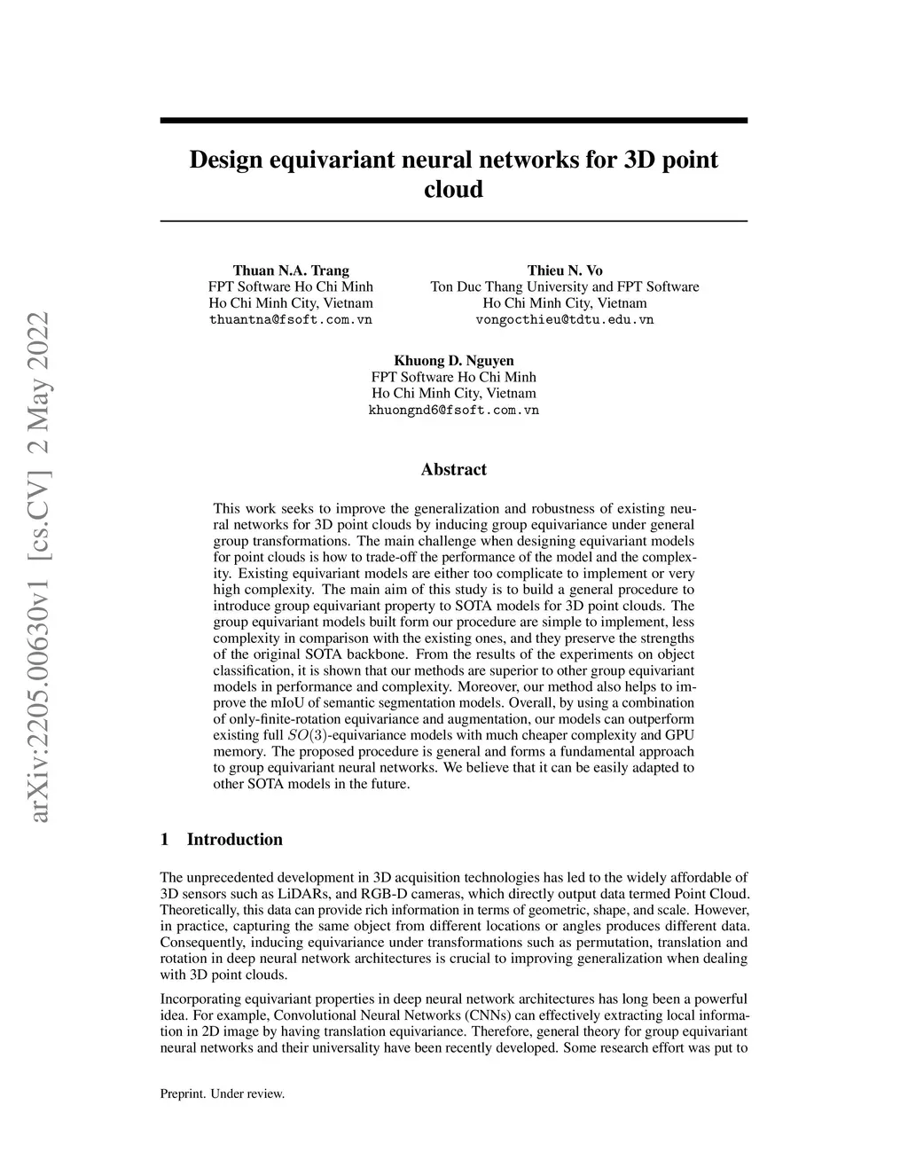 This work seeks to improve the generalization and robustness of existing neural networks for 3D point clouds by inducing group equivariance under general group transformations. The main challenge when designing equivariant models for point clouds is how to trade-off the performance of the model and the complexity. Existing equivariant models are either too complicate to implement or very high complexity. The main aim of this study is to build a general procedure to introduce group equivariant property to SOTA models for 3D point clouds. The group equivariant models built form our procedure are simple to implement, less complexity in comparison with the existing ones, and they preserve the strengths of the original SOTA backbone. From the results of the experiments on object classification, it is shown that our methods are superior to other group equivariant models in performance and complexity. Moreover, our method also helps to improve the mIoU of semantic segmentation models. Overall, by using a combination of only-finite-rotation equivariance and augmentation, our models can outperform existing full -equivariance models with much cheaper complexity and GPU memory. The proposed procedure is general and forms a fundamental approach to group equivariant neural networks. We believe that it can be easily adapted to other SOTA models in the future.