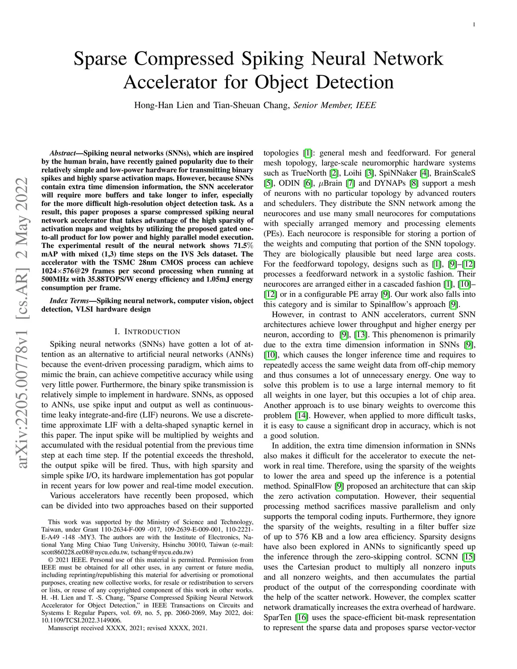 Sparse Compressed Spiking Neural Network Accelerator for Object