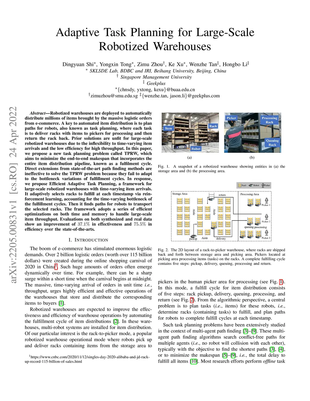 Adaptive Task Planning for Large-Scale Robotized Warehouses