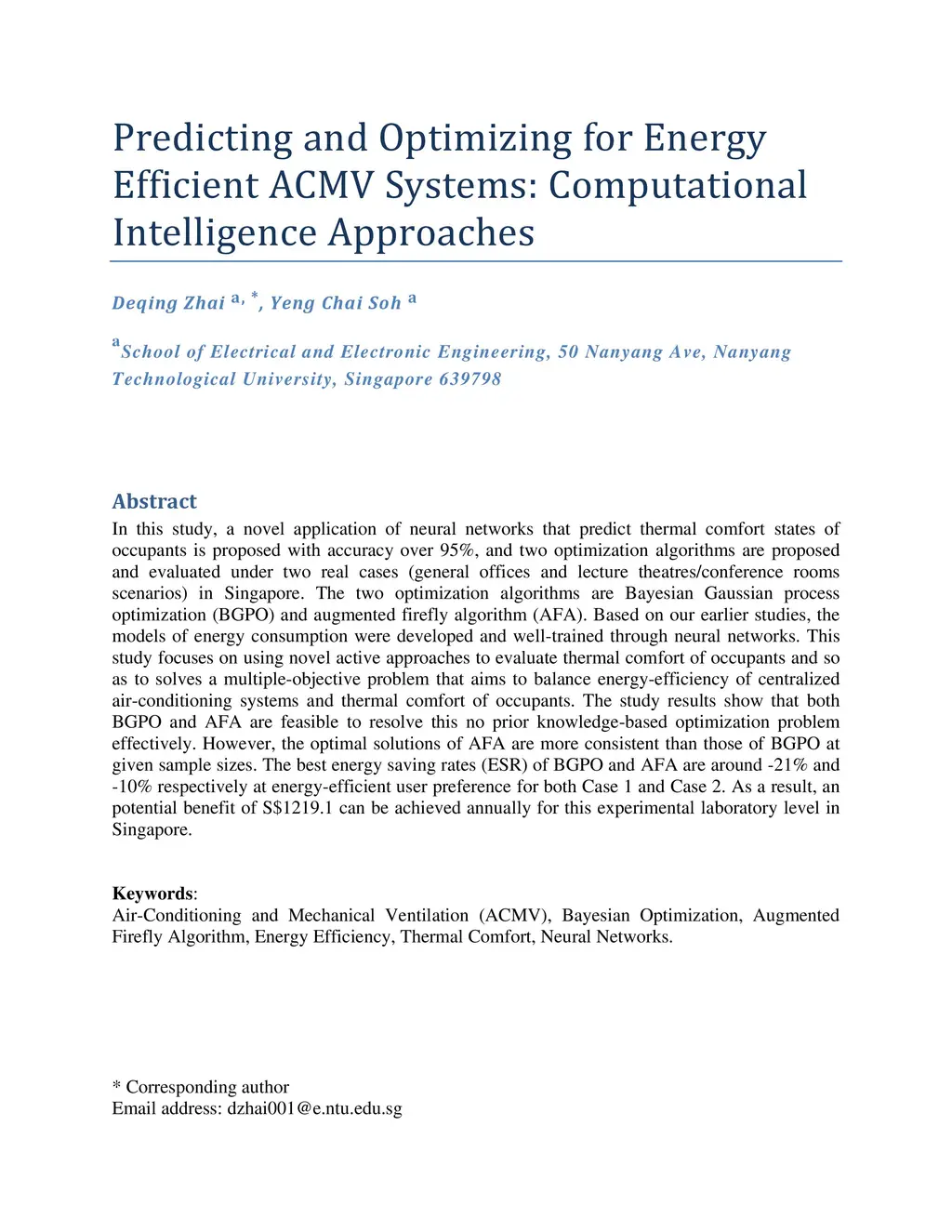 Predicting and Optimizing for Energy Efficient ACMV Systems: