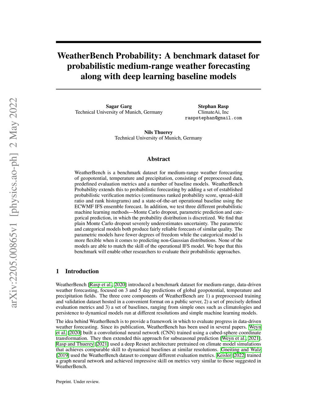 WeatherBench Probability: A benchmark dataset for probabilistic