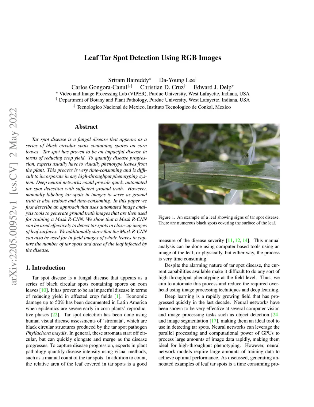 Leaf Tar Spot Detection Using RGB Images