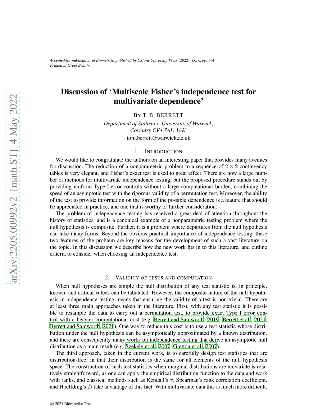Discussion of 'Multivariate Fisher's independence test for multivariate