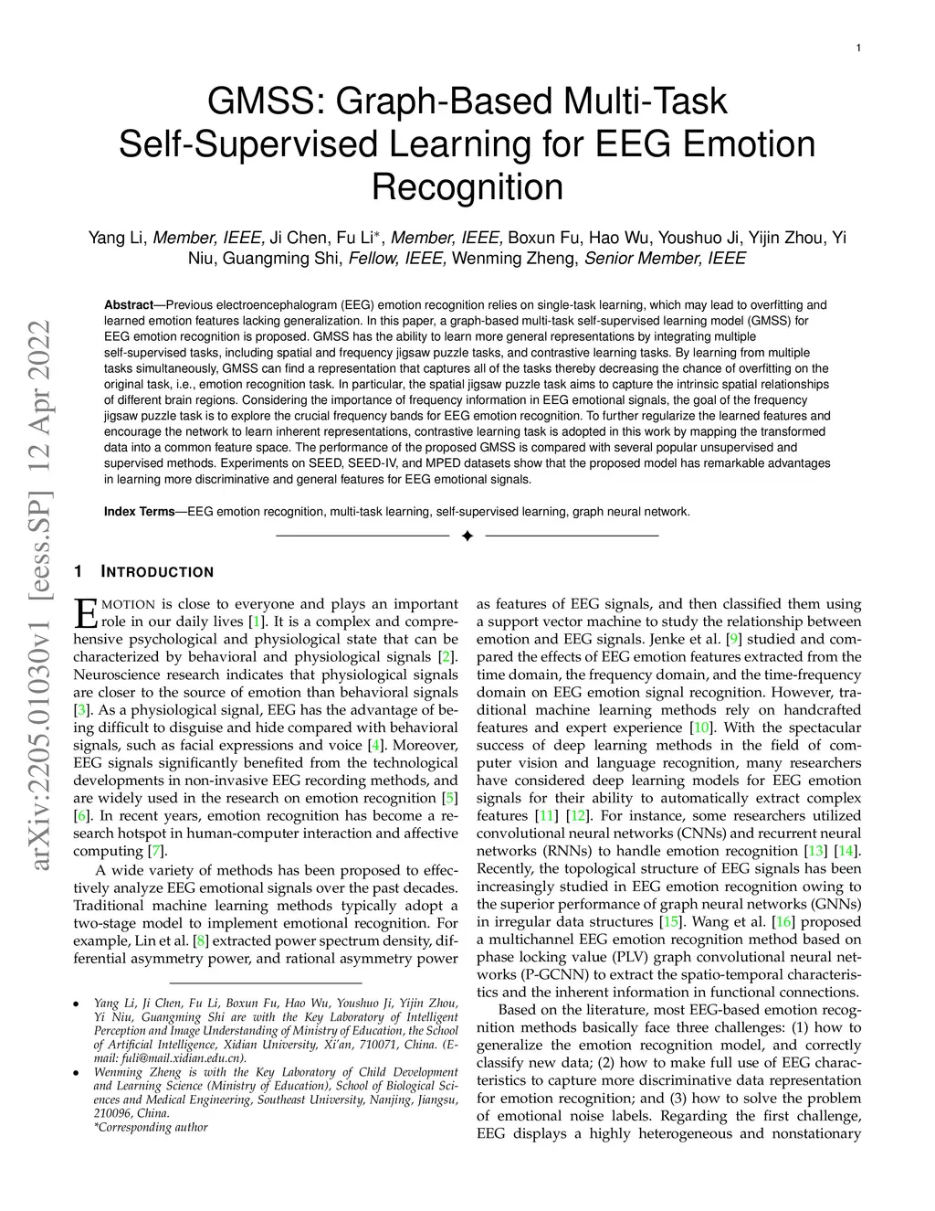 GMSS: Graph-Based Multi-Task Self-Supervised Learning for EEG Emotion