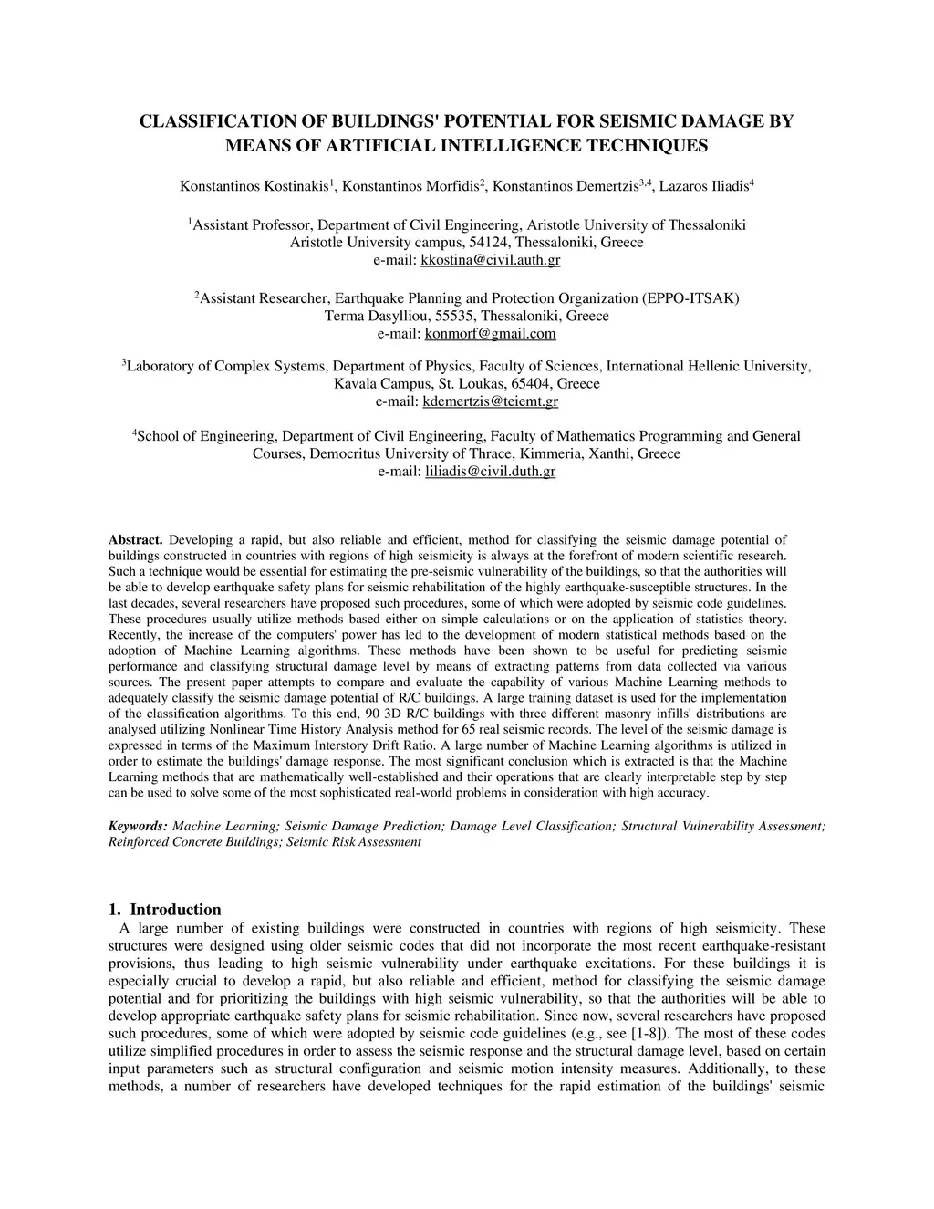 Classification of Buildings' Potential for Seismic Damage by Means of