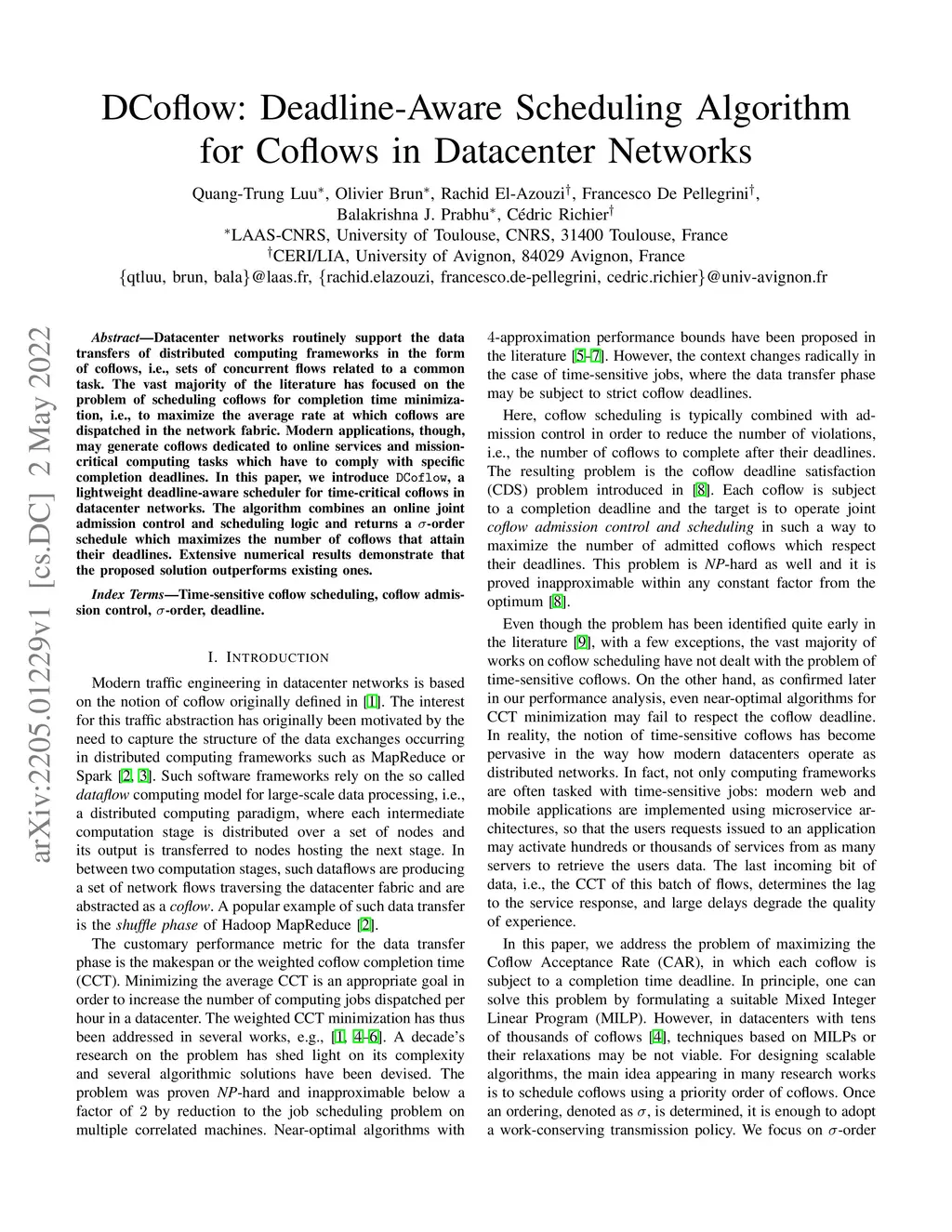 DCoflow: Deadline-Aware Scheduling Algorithm for Coflows in Datacenter