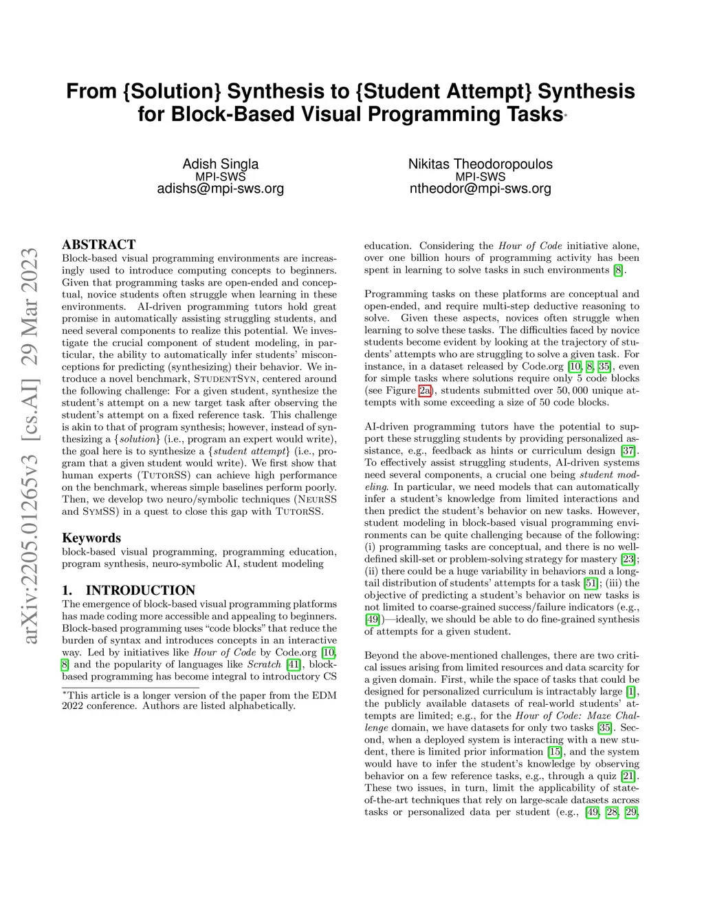 From {Solution Synthesis} to {Student Attempt Synthesis} for Block-Based