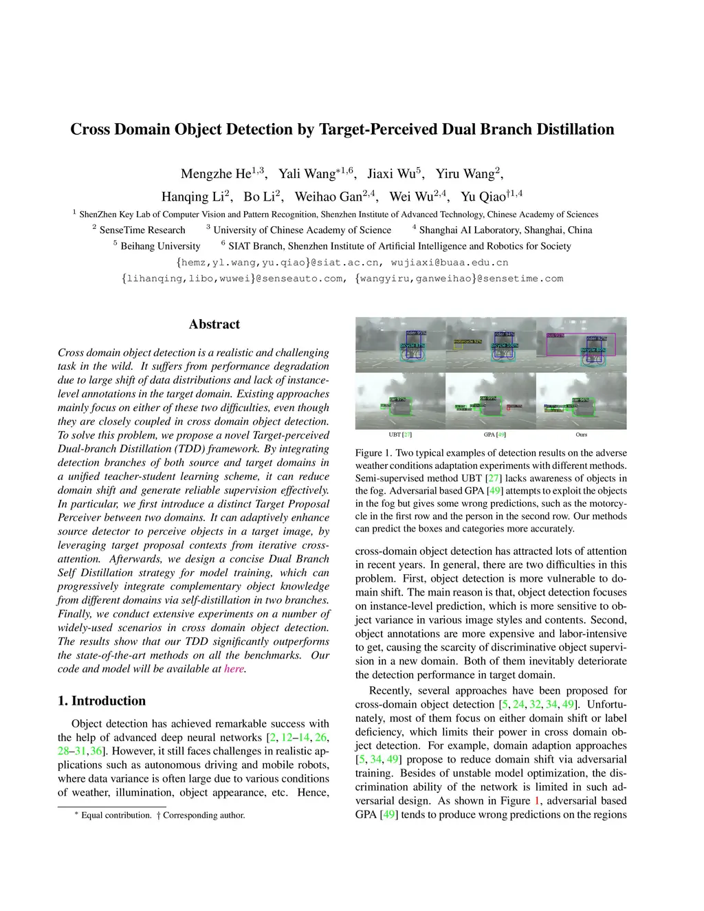 Cross Domain Object Detection by Target-Perceived Dual Branch
