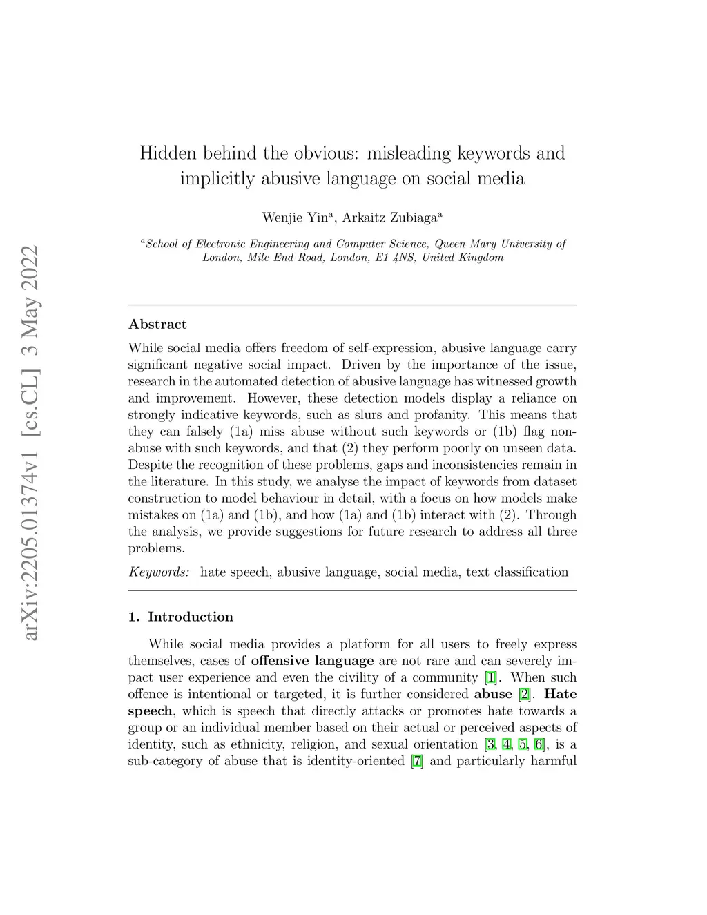 Hidden behind the obvious: misleading keywords and implicitly abusive