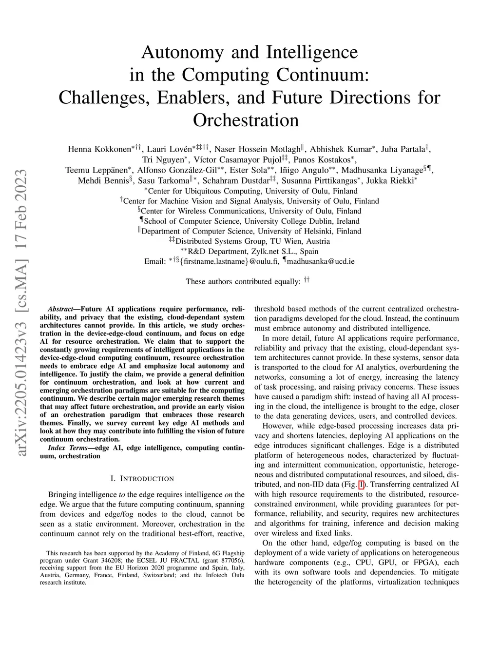 Autonomy and Intelligence in the Computing Continuum: Challenges,