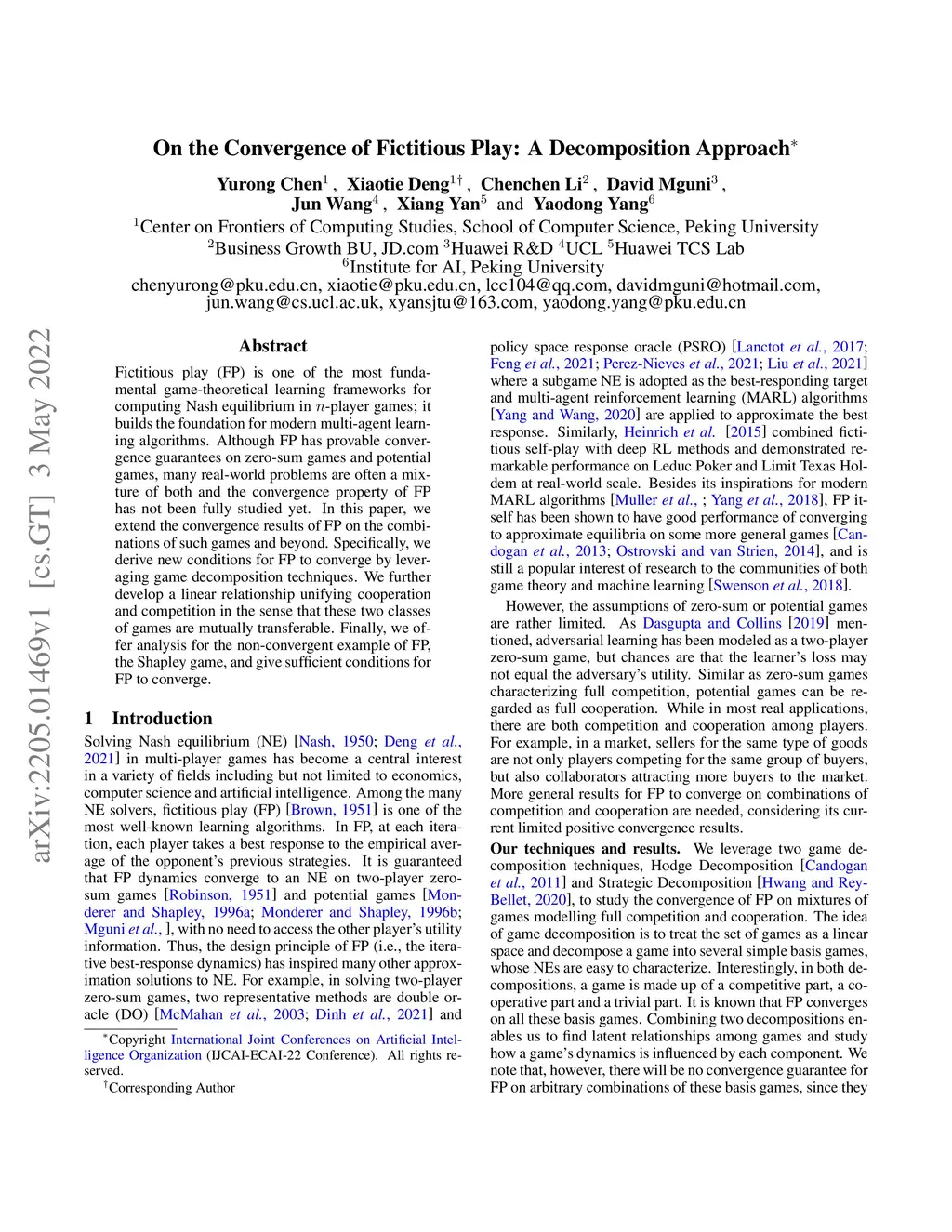 On the Convergence of Fictitious Play: A Decomposition Approach