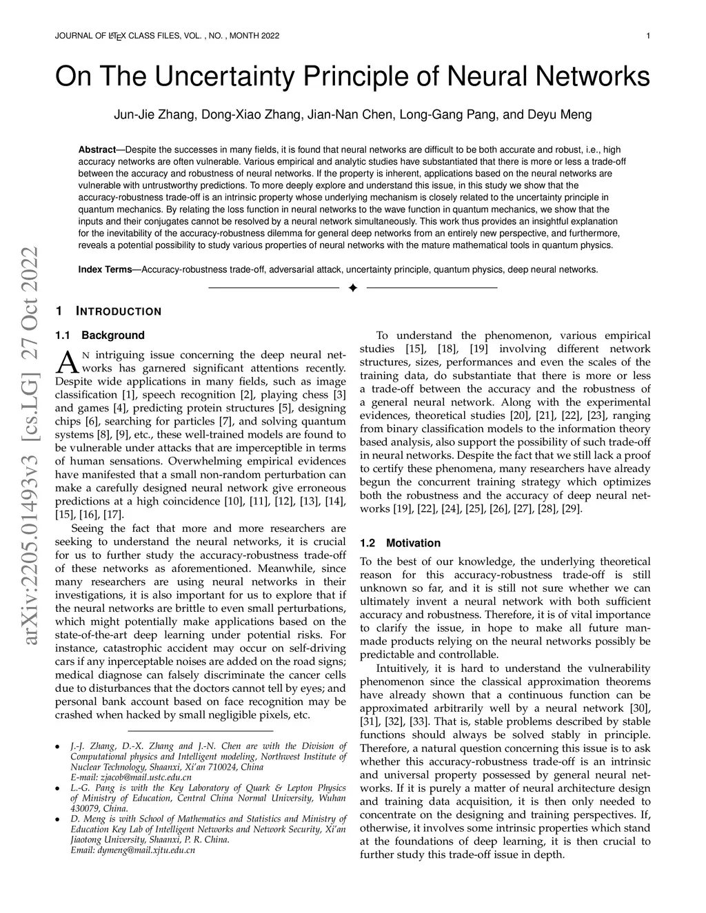 In this study, we explore the inherent trade-off between accuracy and robustness in neural networks, drawing an analogy to the uncertainty principle in quantum mechanics. We propose that neural networks are subject to an uncertainty relation, which manifests as a fundamental limitation in their ability to simultaneously achieve high accuracy and robustness against adversarial attacks. Through mathematical proofs and empirical evidence, we demonstrate that this trade-off is a natural consequence of the sharp boundaries formed between different class concepts during training. Our findings reveal that the complementarity principle, a cornerstone of quantum physics, applies to neural networks, imposing fundamental limits on their capabilities in simultaneous learning of conjugate features. Meanwhile, our work suggests that achieving human-level intelligence through a single network architecture or massive datasets alone may be inherently limited. Our work provides new insights into the theoretical foundations of neural network vulnerability and opens up avenues for designing more robust neural network architectures.