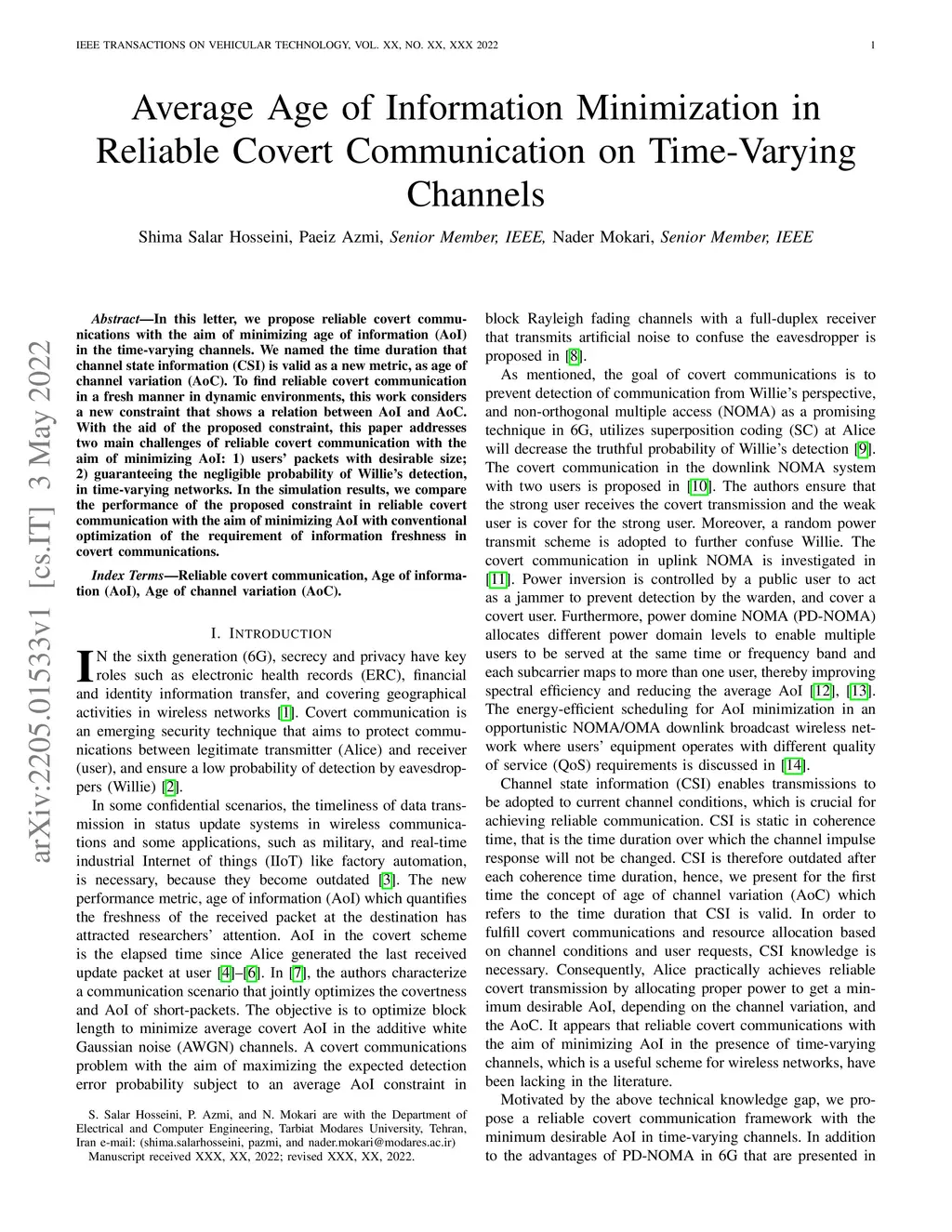 In this letter, we propose reliable covert communications with the aim of minimizing age of information (AoI) in the time-varying channels. We named the time duration that channel state information (CSI) is valid as a new metric, as age of channel variation (AoC). To find reliable covert communication in a fresh manner in dynamic environments, this work considers a new constraint that shows a relation between AoI and AoC. With the aid of the proposed constraint, this paper addresses two main challenges of reliable covert communication with the aim of minimizing AoI: 1) users packets with desirable size; 2) guaranteeing the negligible probability of Willies detection, in time-varying networks. In the simulation results, we compare the performance of the proposed constraint in reliable covert communication with the aim of minimizing AoI with conventional optimization of the requirement of information freshness in covert communications.
