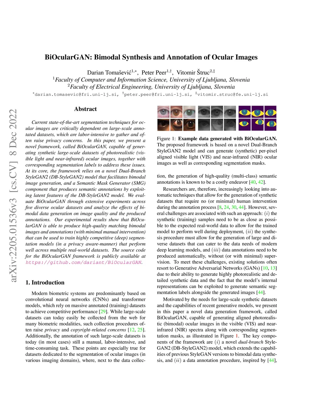 BiOcularGAN: Bimodal Synthesis and Annotation of Ocular Images