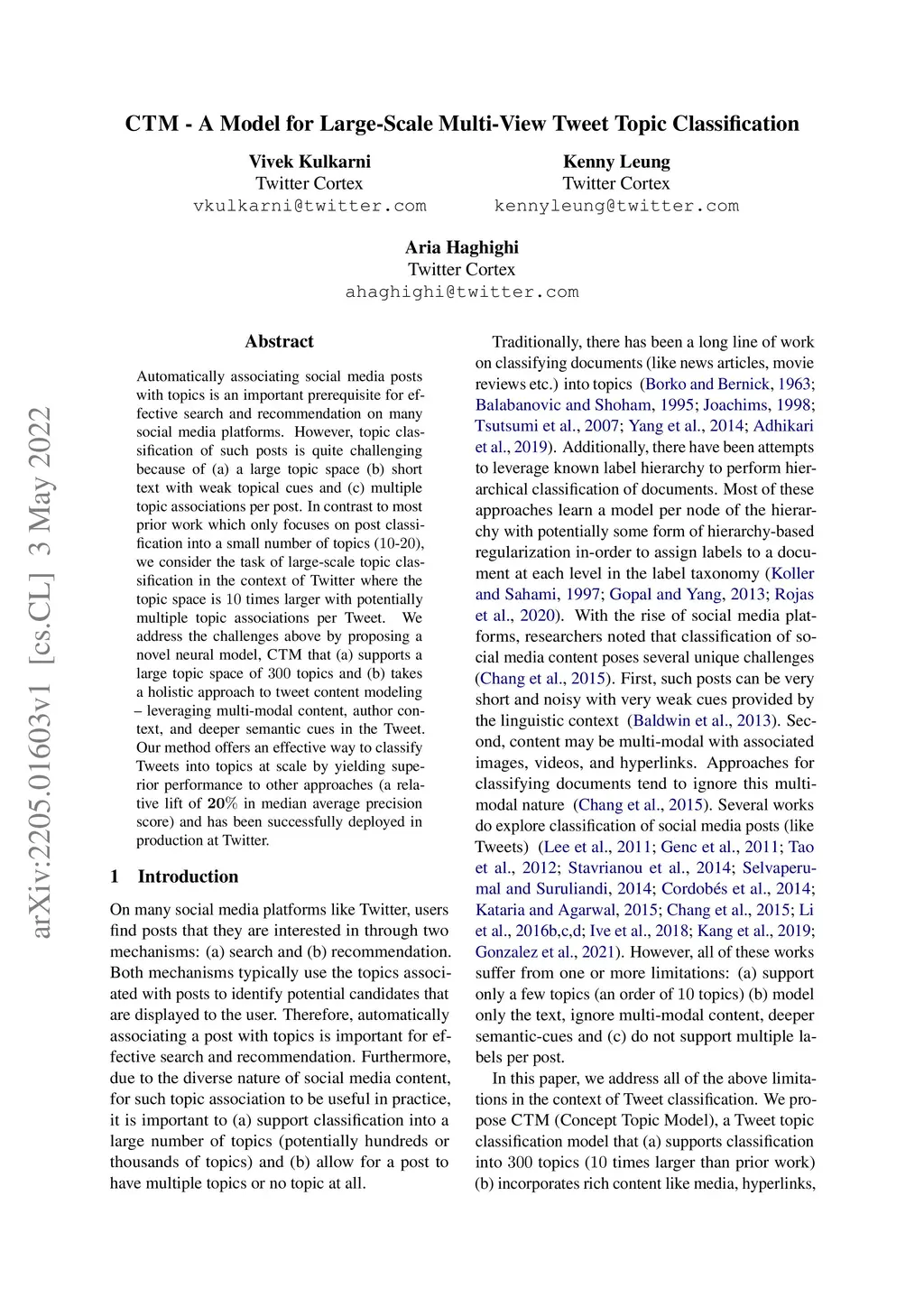 CTM -- A Model for Large-Scale Multi-View Tweet Topic Classification