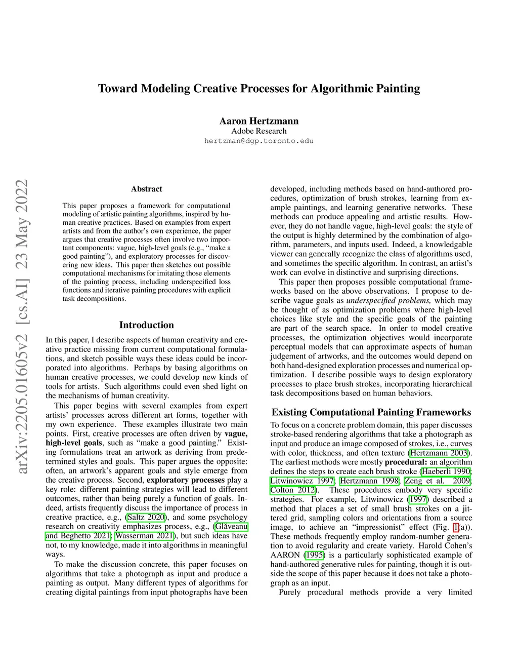 This paper proposes a framework for computational modeling of artistic painting algorithms, inspired by human creative practices. Based on examples from expert artists and from the author's own experience, the paper argues that creative processes often involve two important components: vague, high-level goals (e.g., "make a good painting"), and exploratory processes for discovering new ideas. This paper then sketches out possible computational mechanisms for imitating those elements of the painting process, including underspecified loss functions and iterative painting procedures with explicit task decompositions.