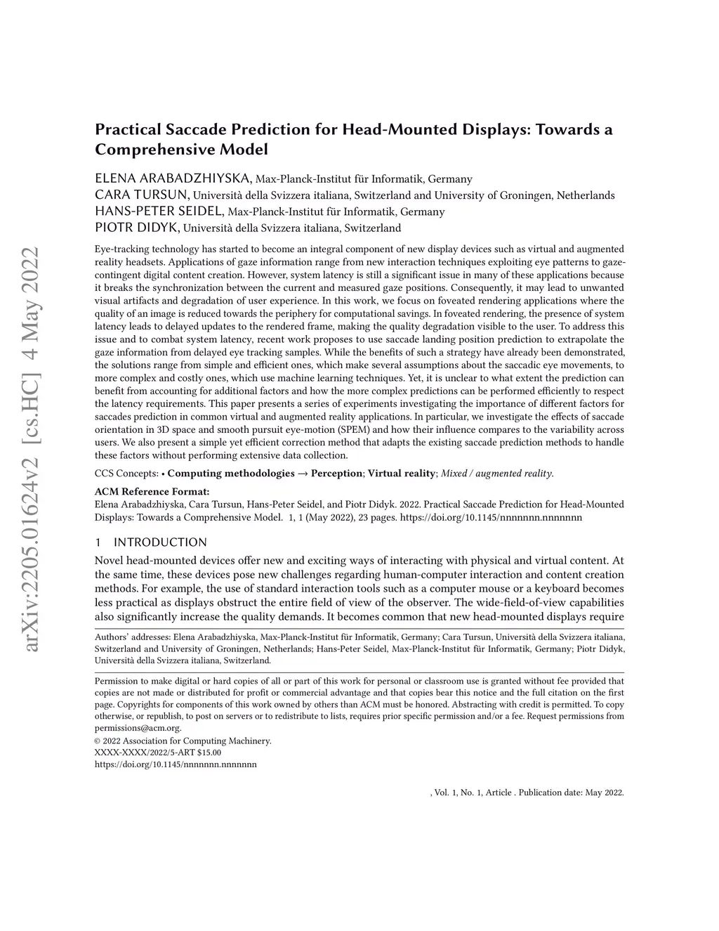 Practical Saccade Prediction for Head-Mounted Displays: Towards a