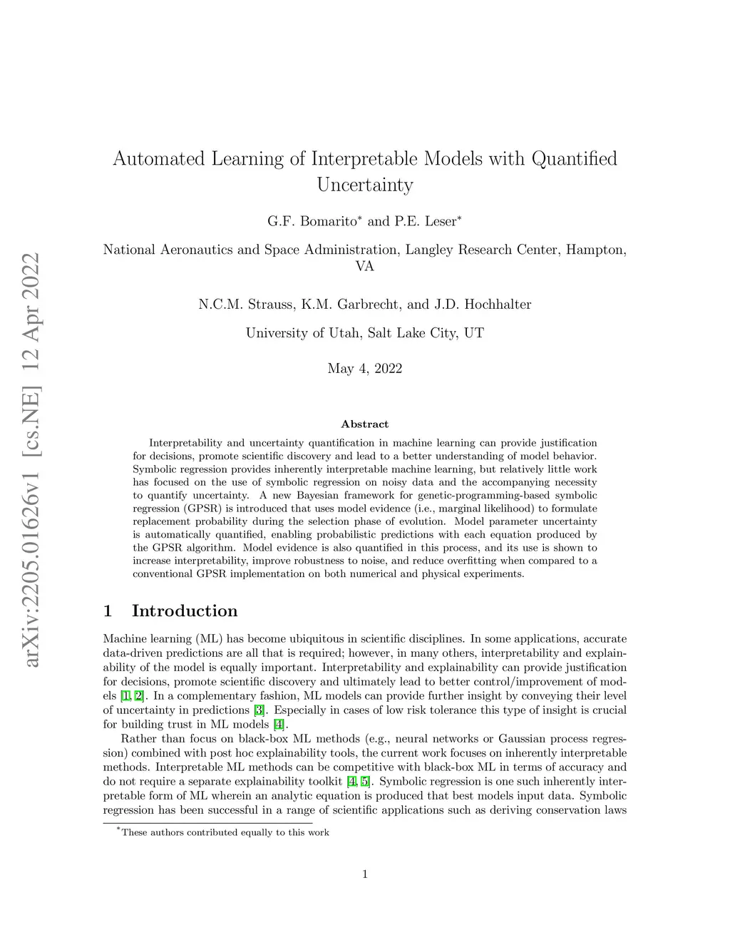 Automated Learning of Interpretable Models with Quantified Uncertainty