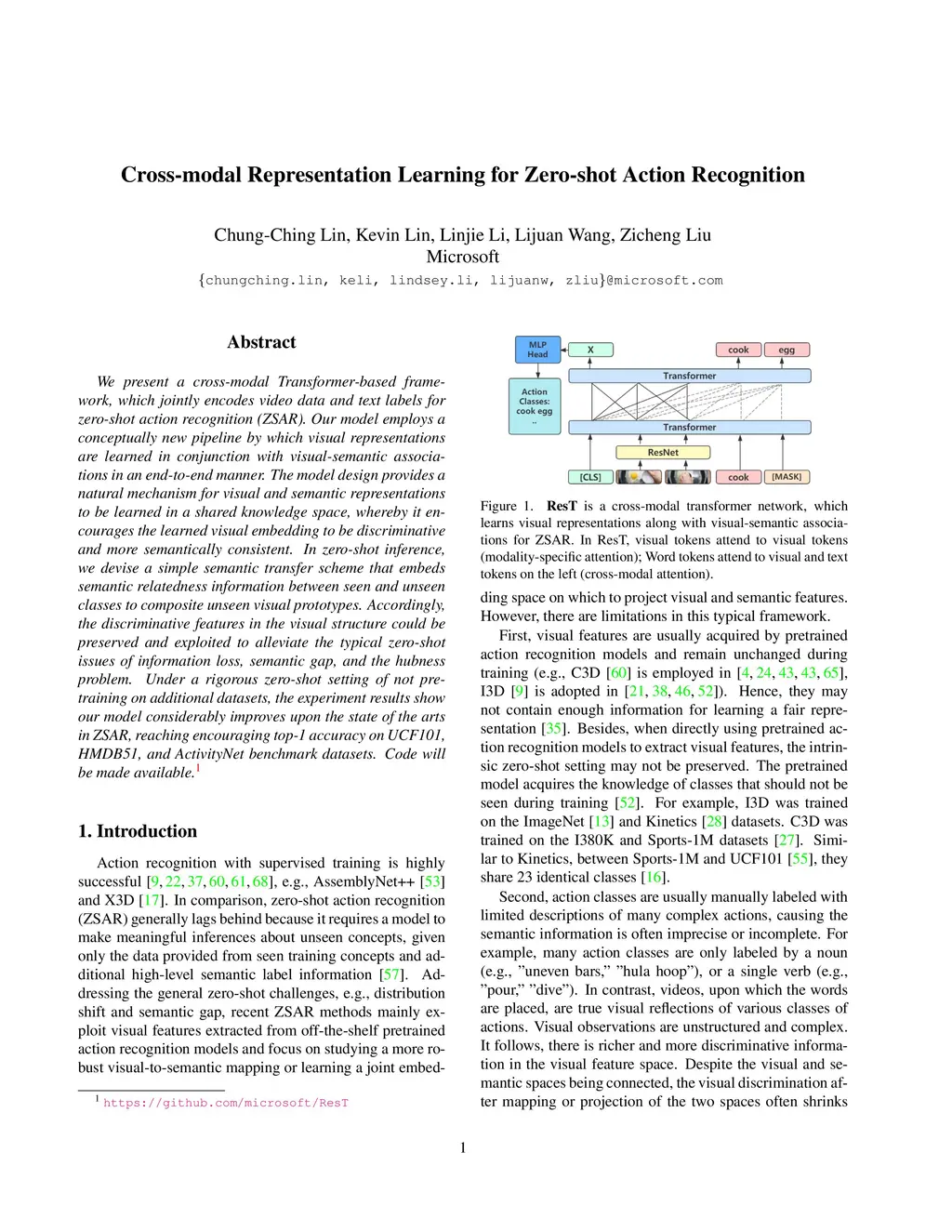 Cross-modal Representation Learning for Zero-shot Action Recognition