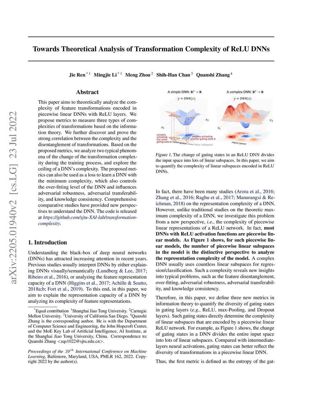 Towards Theoretical Analysis of Transformation Complexity of ReLU DNNs