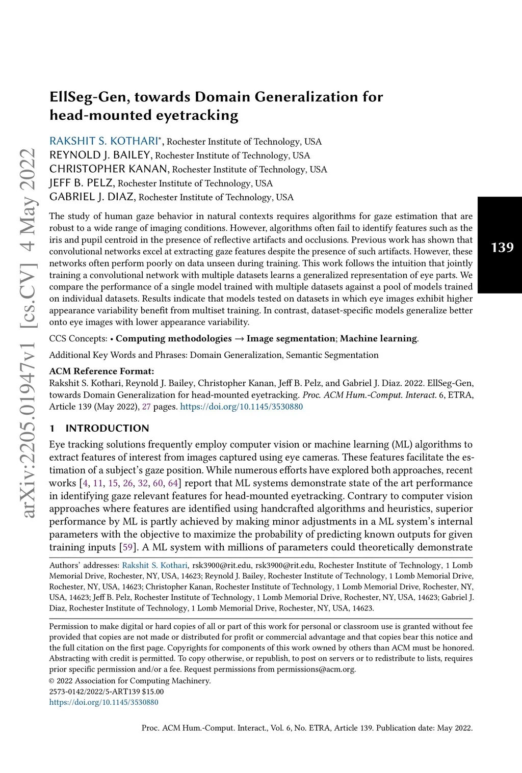 EllSeg-Gen, towards Domain Generalization for head-mounted eyetracking