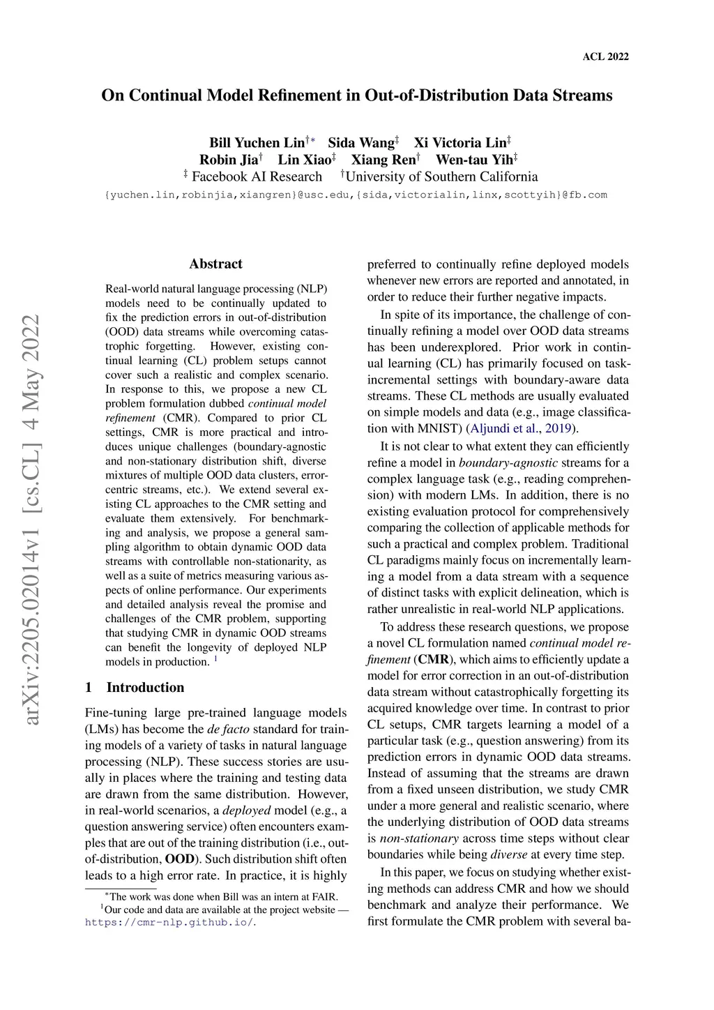 On Continual Model Refinement in Out-of-Distribution Data Streams