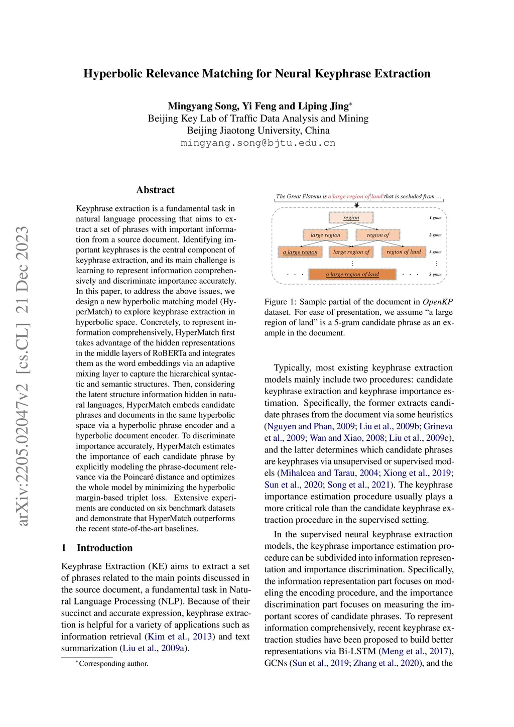 Hyperbolic Relevance Matching for Neural Keyphrase Extraction