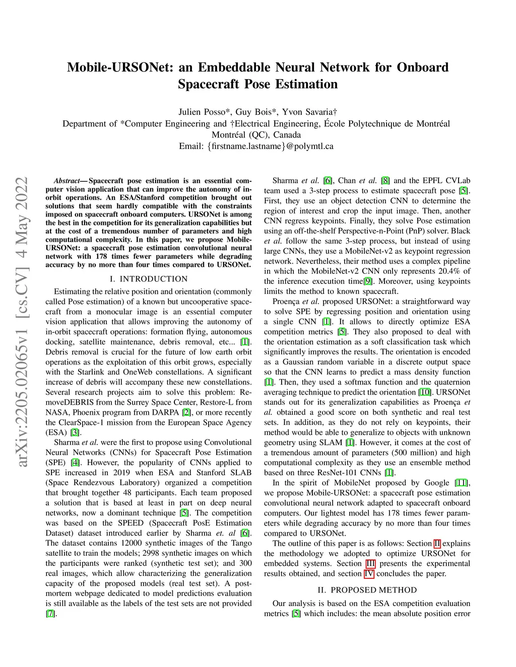 Spacecraft pose estimation is an essential computer vision application that can improve the autonomy of in-orbit operations. An ESA/Stanford competition brought out solutions that seem hardly compatible with the constraints imposed on spacecraft onboard computers. URSONet is among the best in the competition for its generalization capabilities but at the cost of a tremendous number of parameters and high computational complexity. In this paper, we propose Mobile-URSONet: a spacecraft pose estimation convolutional neural network with 178 times fewer parameters while degrading accuracy by no more than four times compared to URSONet.