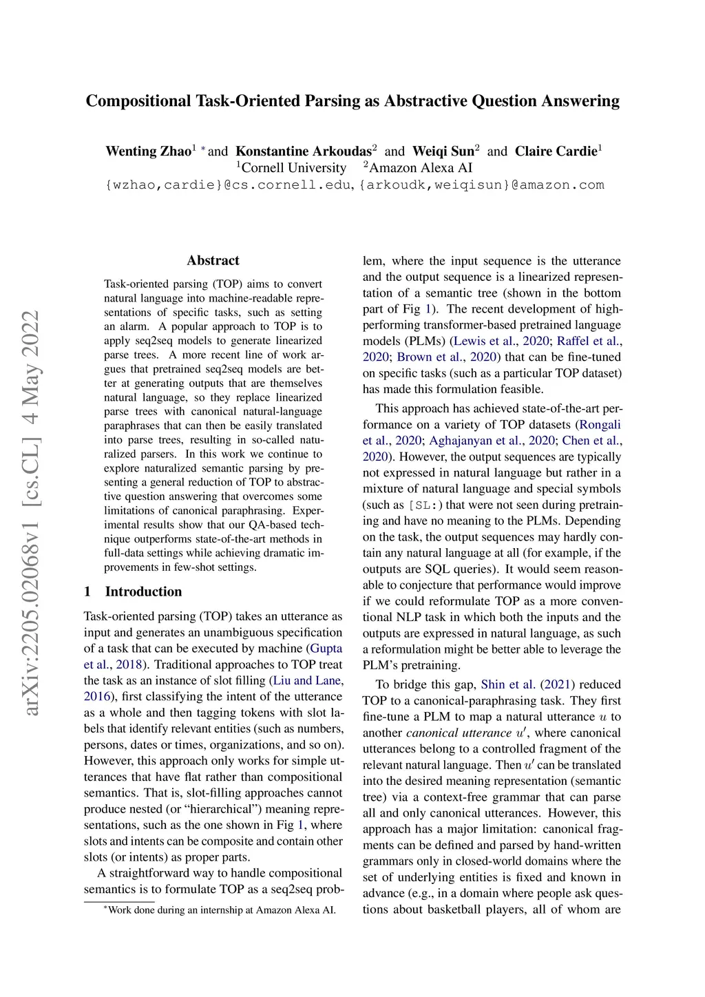 Compositional Task-Oriented Parsing as Abstractive Question Answering