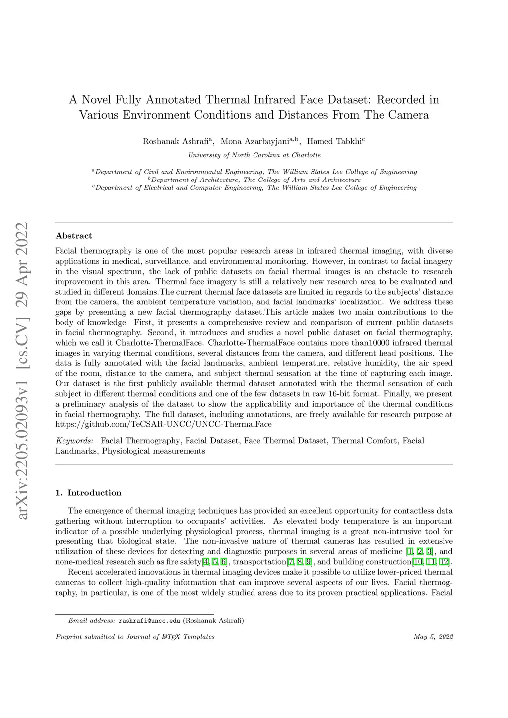 Facial thermography is one of the most popular research areas in infrared thermal imaging, with diverse applications in medical, surveillance, and environmental monitoring. However, in contrast to facial imagery in the visual spectrum, the lack of public datasets on facial thermal images is an obstacle to research improvement in this area. Thermal face imagery is still a relatively new research area to be evaluated and studied in different domains.The current thermal face datasets are limited in regards to the subjects' distance from the camera, the ambient temperature variation, and facial landmarks' localization. We address these gaps by presenting a new facial thermography dataset. This article makes two main contributions to the body of knowledge. First, it presents a comprehensive review and comparison of current public datasets in facial thermography. Second, it introduces and studies a novel public dataset on facial thermography, which we call it Charlotte-ThermalFace. Charlotte-ThermalFace contains more than10000 infrared thermal images in varying thermal conditions, several distances from the camera, and different head positions. The data is fully annotated with the facial landmarks, ambient temperature, relative humidity, the air speed of the room, distance to the camera, and subject thermal sensation at the time of capturing each image. Our dataset is the first publicly available thermal dataset annotated with the thermal sensation of each subject in different thermal conditions and one of the few datasets in raw 16-bit format. Finally, we present a preliminary analysis of the dataset to show the applicability and importance of the thermal conditions in facial thermography. The full dataset, including annotations, are freely available for research purpose at https://github.com/TeCSAR-UNCC/UNCC-ThermalFace