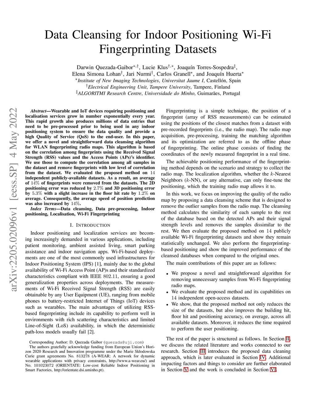 Data Cleansing for Indoor Positioning Wi-Fi Fingerprinting Datasets