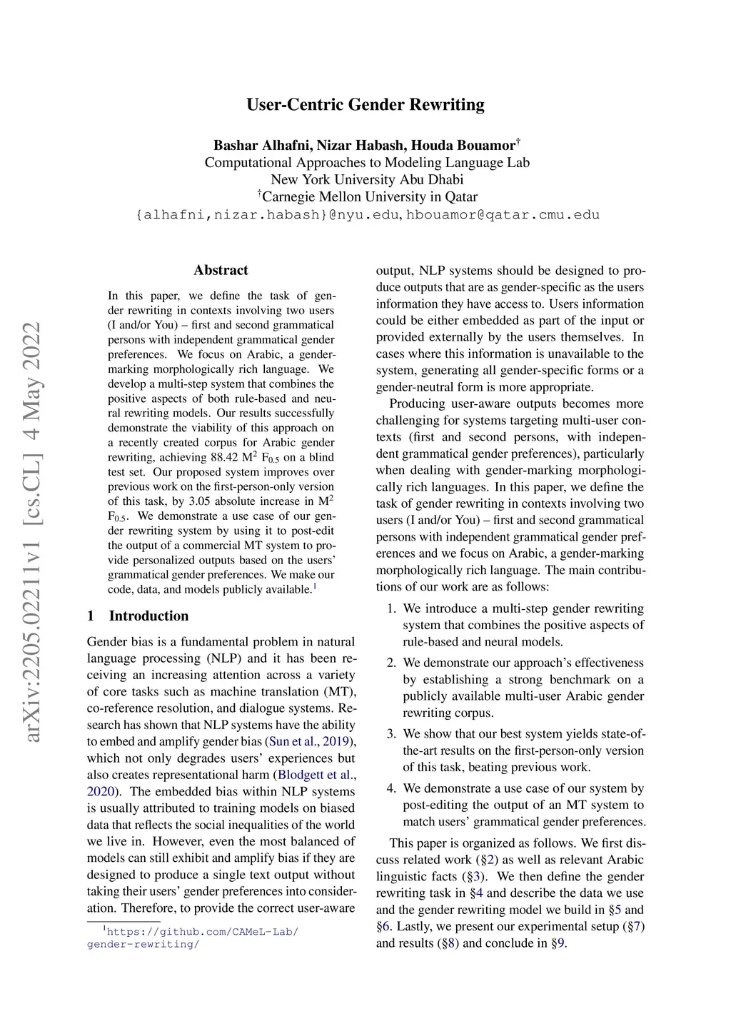 User-Centric Gender Rewriting