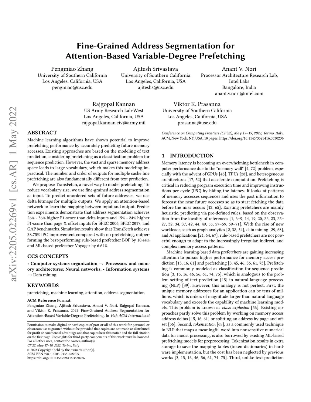 Machine learning algorithms have shown potential to improve prefetching performance by accurately predicting future memory accesses. Existing approaches are based on the modeling of text prediction, considering prefetching as a classification problem for sequence prediction. However, the vast and sparse memory address space leads to large vocabulary, which makes this modeling impractical. The number and order of outputs for multiple cache line prefetching are also fundamentally different from text prediction. We propose TransFetch, a novel way to model prefetching. To reduce vocabulary size, we use fine-grained address segmentation as input. To predict unordered sets of future addresses, we use delta bitmaps for multiple outputs. We apply an attention-based network to learn the mapping between input and output. Prediction experiments demonstrate that address segmentation achieves 26% - 36% higher F1-score than delta inputs and 15% - 24% higher F1-score than page & offset inputs for SPEC 2006, SPEC 2017, and GAP benchmarks. Simulation results show that TransFetch achieves 38.75% IPC improvement compared with no prefetching, outperforming the best-performing rule-based prefetcher BOP by 10.44%, and ML-based prefetcher Voyager by 6.64%.