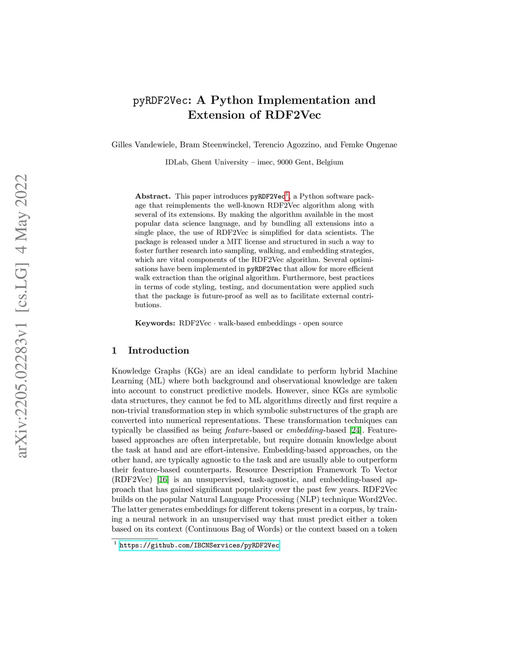 pyRDF2Vec: A Python Implementation and Extension of RDF2Vec