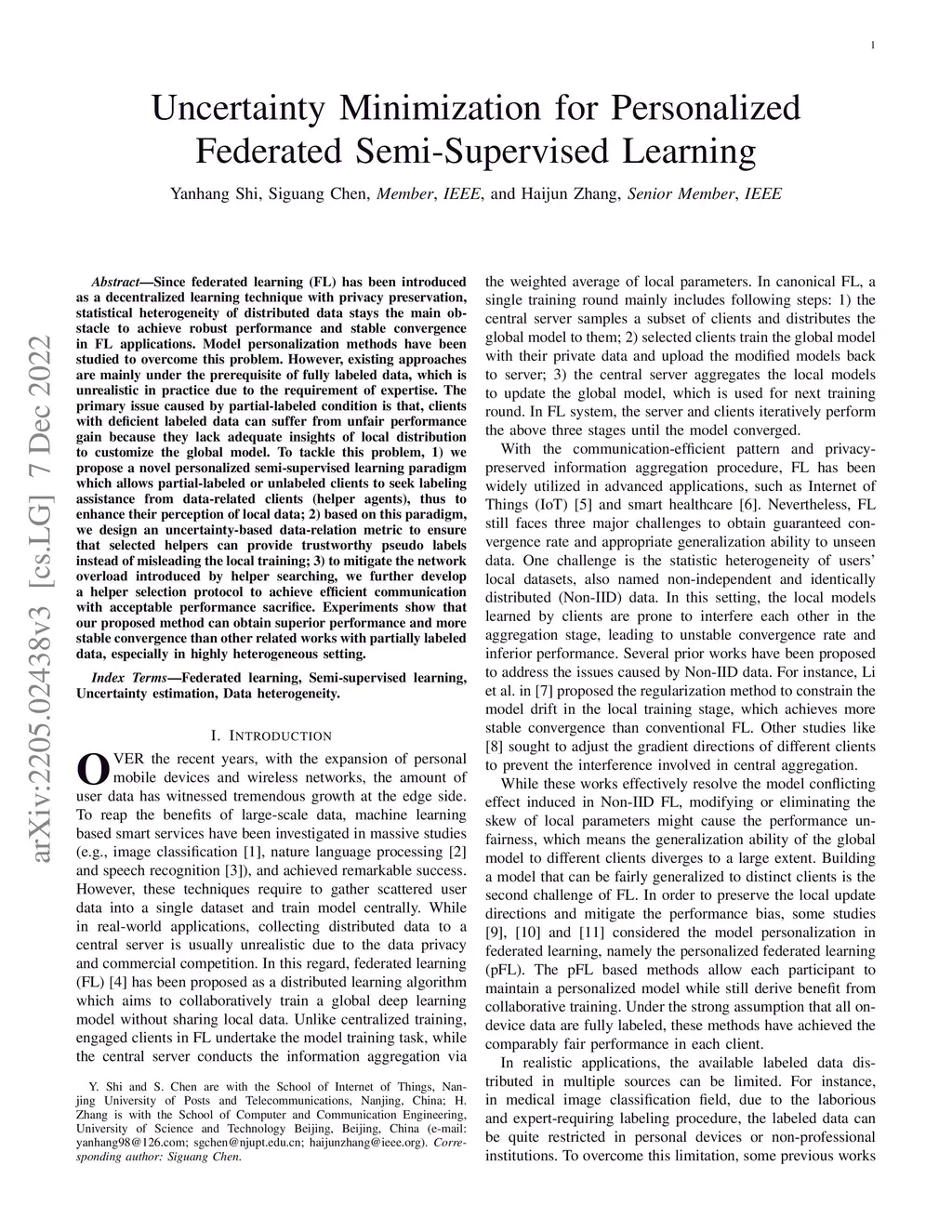 Since federated learning (FL) has been introduced as a decentralized learning technique with privacy preservation, statistical heterogeneity of distributed data stays the main obstacle to achieve robust performance and stable convergence in FL applications. Model personalization methods have been studied to overcome this problem. However, existing approaches are mainly under the prerequisite of fully labeled data, which is unrealistic in practice due to the requirement of expertise. The primary issue caused by partial-labeled condition is that, clients with deficient labeled data can suffer from unfair performance gain because they lack adequate insights of local distribution to customize the global model. To tackle this problem, 1) we propose a novel personalized semi-supervised learning paradigm which allows partial-labeled or unlabeled clients to seek labeling assistance from data-related clients (helper agents), thus to enhance their perception of local data; 2) based on this paradigm, we design an uncertainty-based data-relation metric to ensure that selected helpers can provide trustworthy pseudo labels instead of misleading the local training; 3) to mitigate the network overload introduced by helper searching, we further develop a helper selection protocol to achieve efficient communication with acceptable performance sacrifice. Experiments show that our proposed method can obtain superior performance and more stable convergence than other related works with partially labeled data, especially in highly heterogeneous setting.