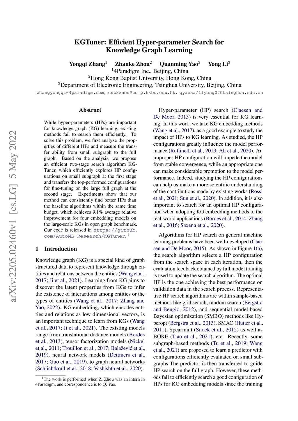 KGTuner: Efficient Hyper-parameter Search for Knowledge Graph Learning