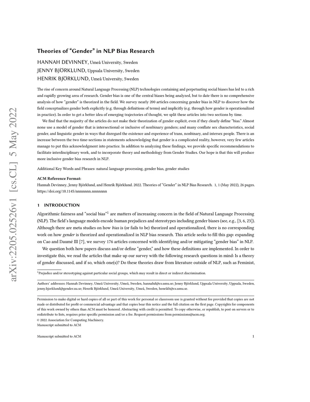 The rise of concern around Natural Language Processing (NLP) technologies containing and perpetuating social biases has led to a rich and rapidly growing area of research. Gender bias is one of the central biases being analyzed, but to date there is no comprehensive analysis of how "gender" is theorized in the field. We survey nearly 200 articles concerning gender bias in NLP to discover how the field conceptualizes gender both explicitly (e.g. through definitions of terms) and implicitly (e.g. through how gender is operationalized in practice). In order to get a better idea of emerging trajectories of thought, we split these articles into two sections by time. We find that the majority of the articles do not make their theorization of gender explicit, even if they clearly define "bias." Almost none use a model of gender that is intersectional or inclusive of nonbinary genders; and many conflate sex characteristics, social gender, and linguistic gender in ways that disregard the existence and experience of trans, nonbinary, and intersex people. There is an increase between the two time-sections in statements acknowledging that gender is a complicated reality, however, very few articles manage to put this acknowledgment into practice. In addition to analyzing these findings, we provide specific recommendations to facilitate interdisciplinary work, and to incorporate theory and methodology from Gender Studies. Our hope is that this will produce more inclusive gender bias research in NLP.