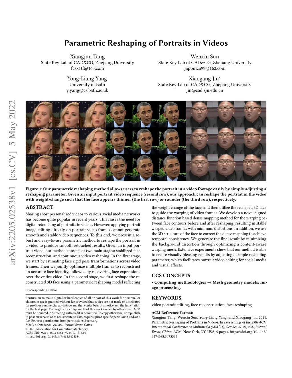 Parametric Reshaping of Portraits in Videos