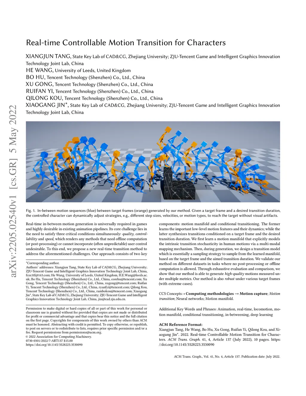 Real-time Controllable Motion Transition for Characters