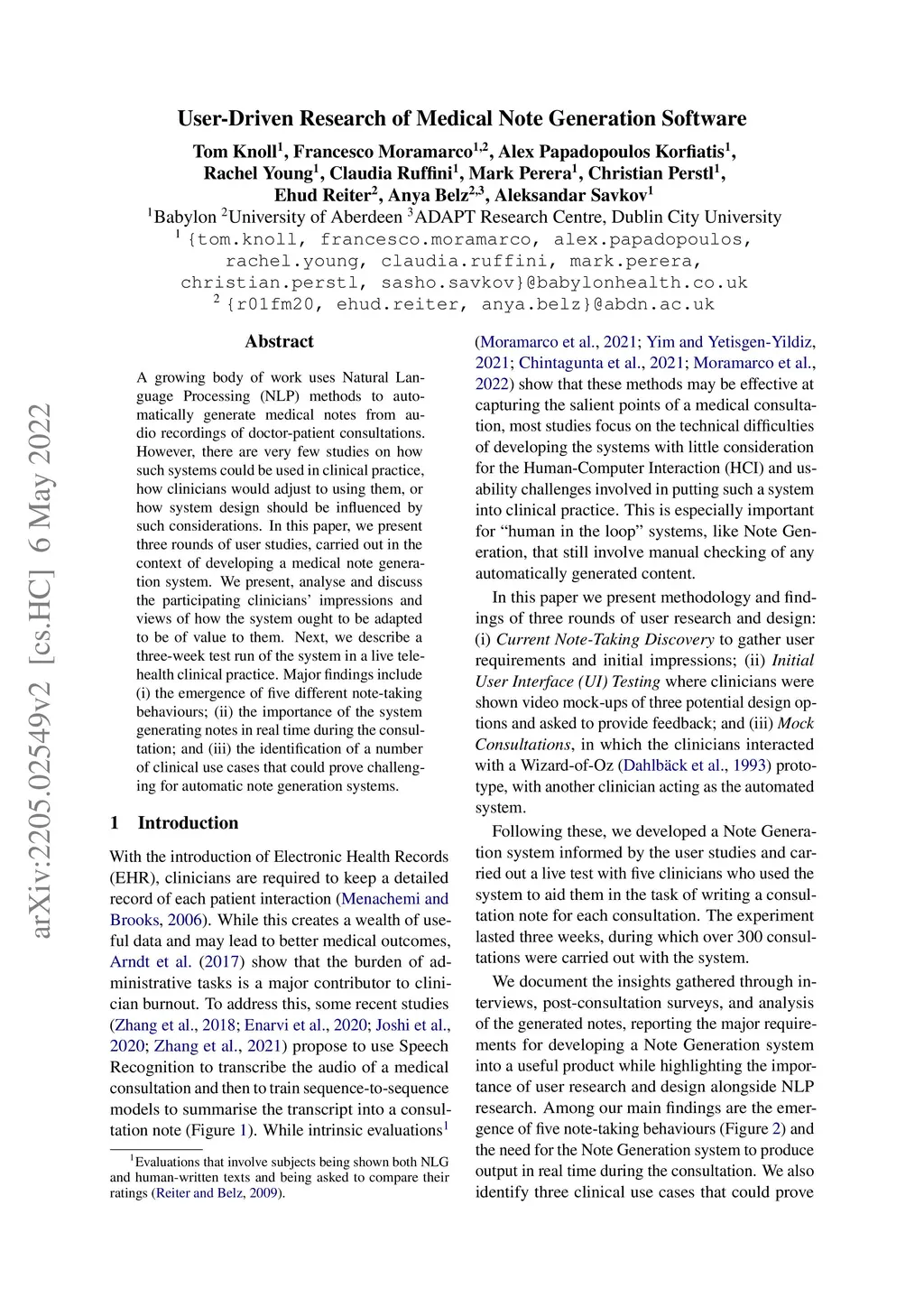 User-Driven Research of Medical Note Generation Software