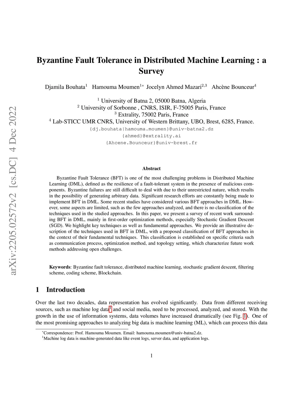 Byzantine Fault Tolerance in Distributed Machine Learning : a Survey