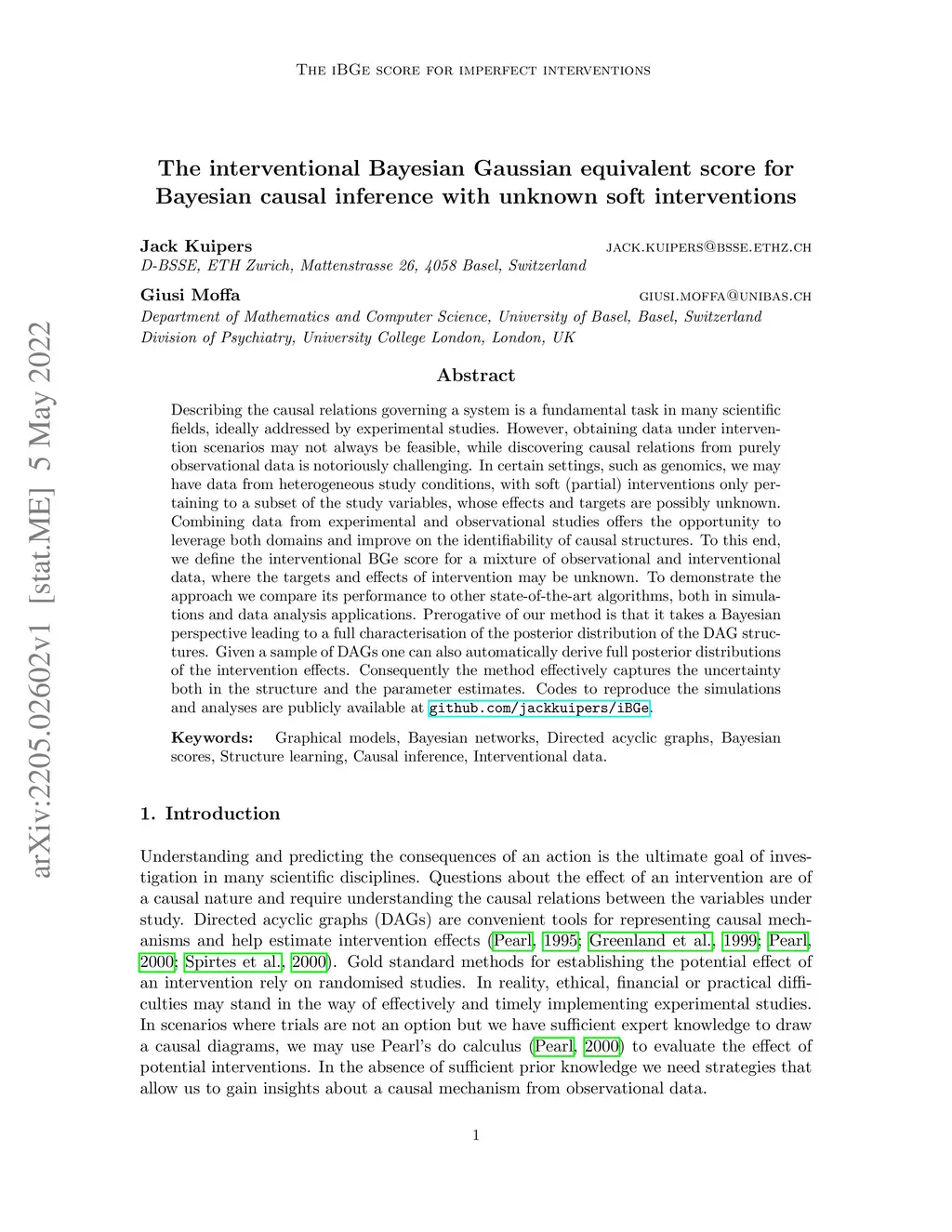 Describing the causal relations governing a system is a fundamental task in many scientific fields, ideally addressed by experimental studies. However, obtaining data under intervention scenarios may not always be feasible, while discovering causal relations from purely observational data is notoriously challenging. In certain settings, such as genomics, we may have data from heterogeneous study conditions, with soft (partial) interventions only pertaining to a subset of the study variables, whose effects and targets are possibly unknown. Combining data from experimental and observational studies offers the opportunity to leverage both domains and improve on the identifiability of causal structures. To this end, we define the interventional BGe score for a mixture of observational and interventional data, where the targets and effects of intervention may be unknown. To demonstrate the approach we compare its performance to other state-of-the-art algorithms, both in simulations and data analysis applications. Prerogative of our method is that it takes a Bayesian perspective leading to a full characterisation of the posterior distribution of the DAG structures. Given a sample of DAGs one can also automatically derive full posterior distributions of the intervention effects. Consequently the method effectively captures the uncertainty both in the structure and the parameter estimates. Codes to reproduce the simulations and analyses are publicly available at github.com/jackkuipers/iBGe