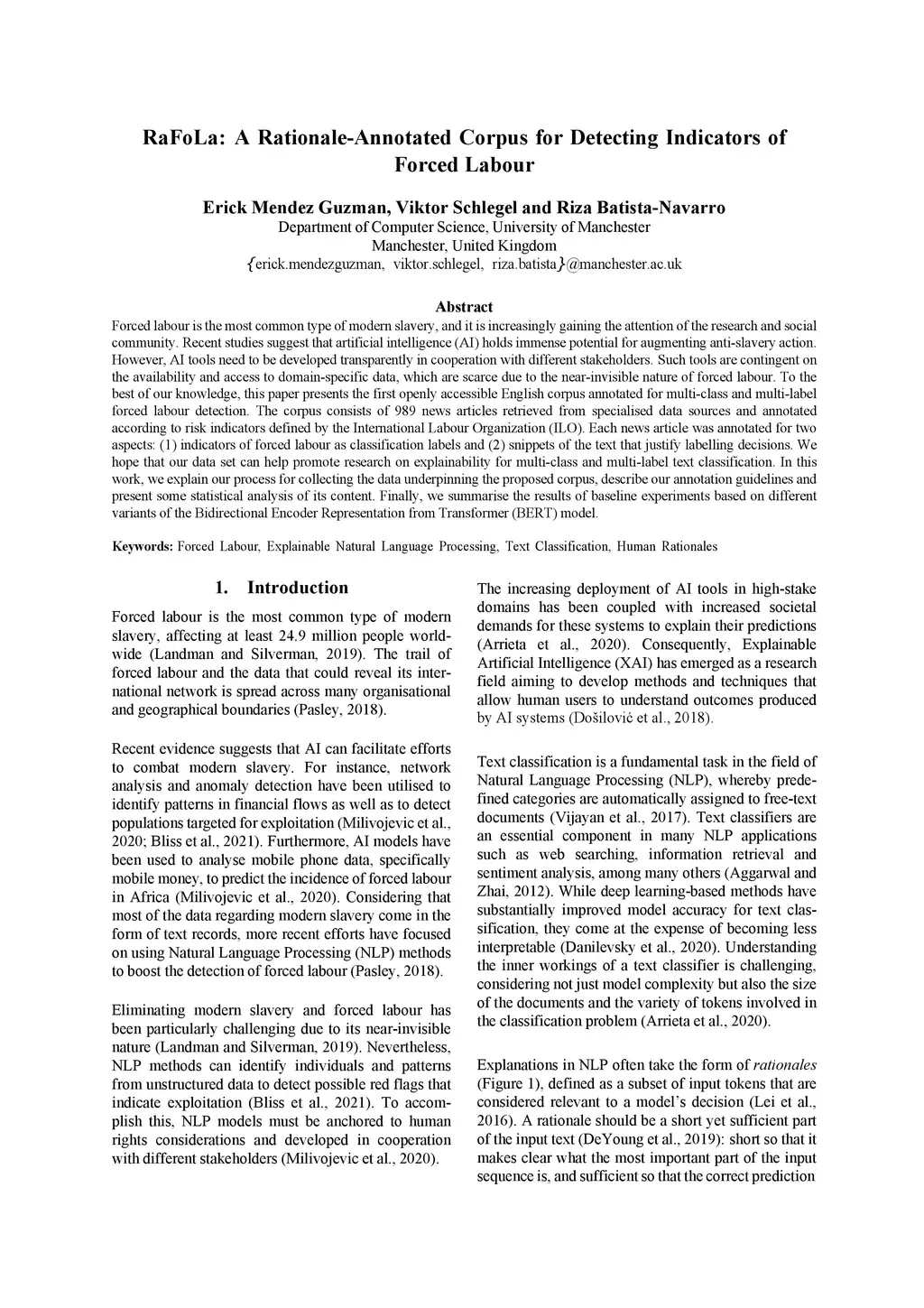 RaFoLa: A Rationale-Annotated Corpus for Detecting Indicators of Forced