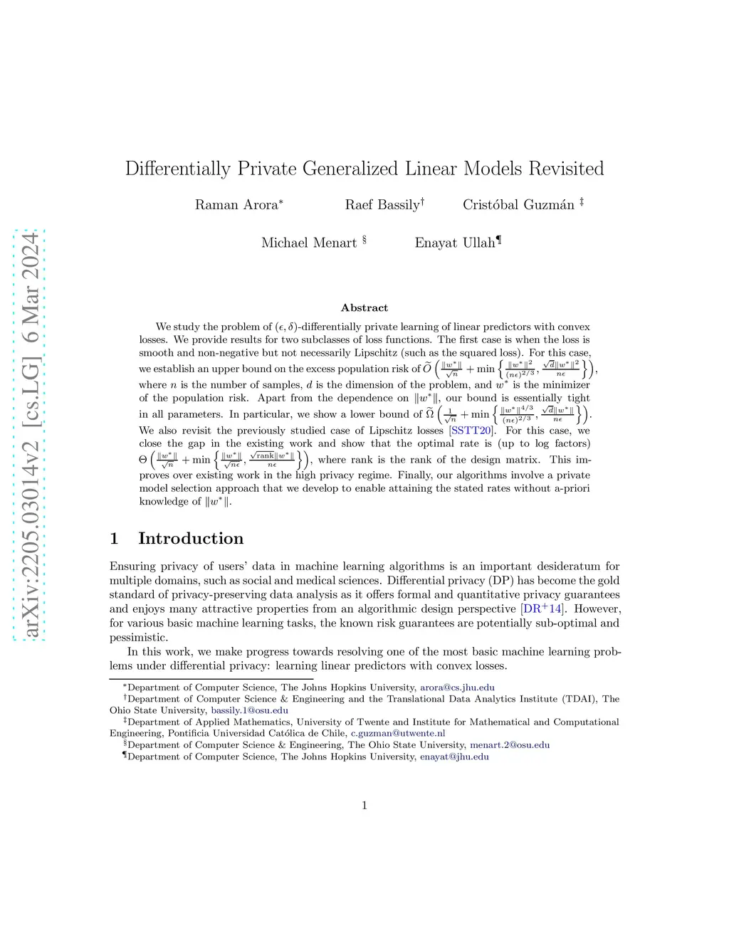 Differentially Private Generalized Linear Models Revisited
