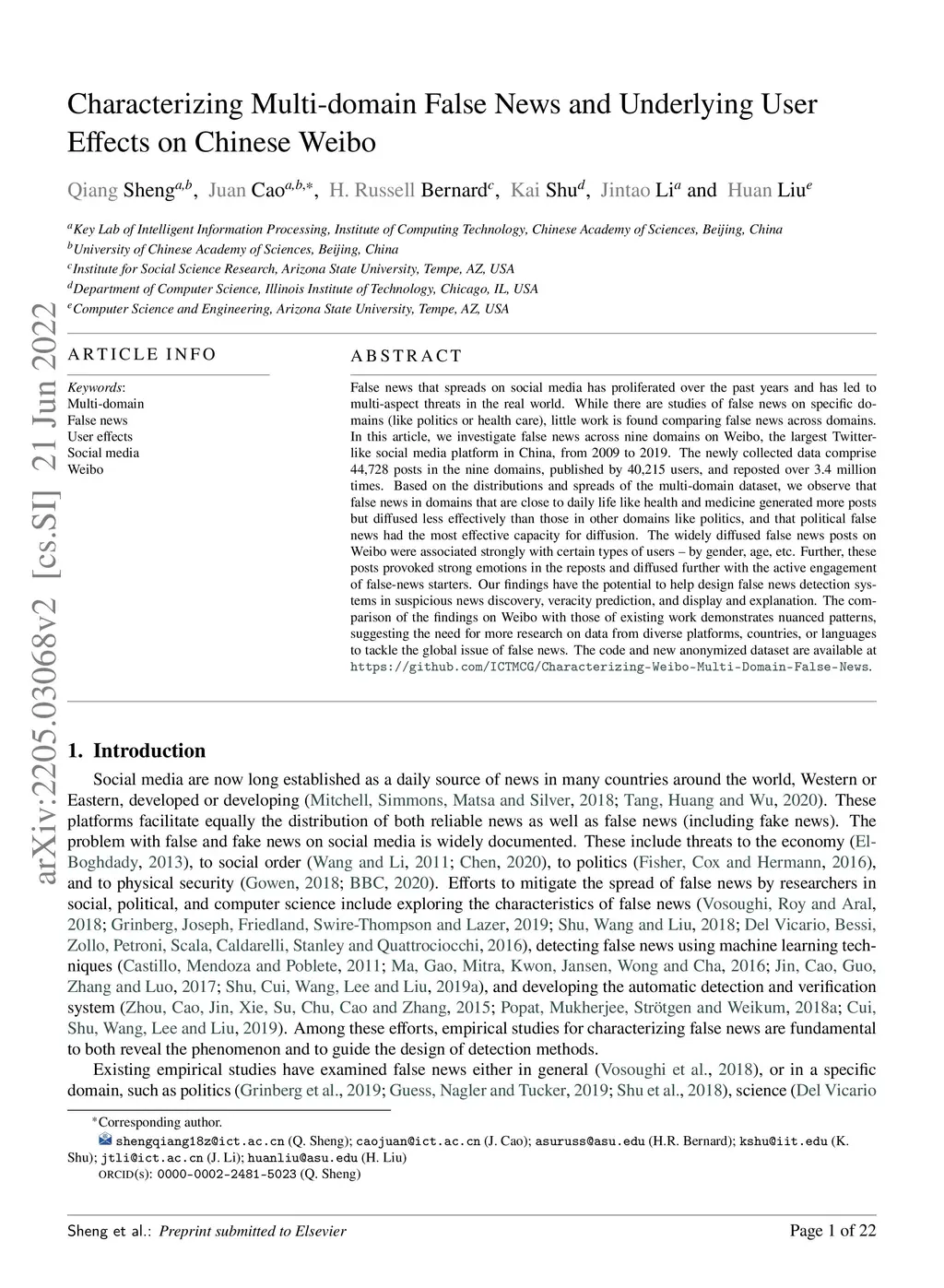 Characterizing Multi-Domain False News and Underlying User Effects on