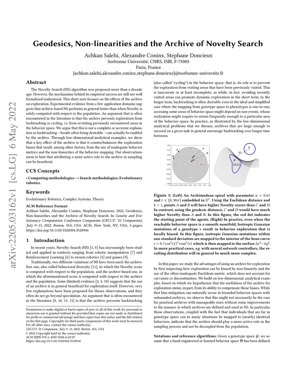 Geodesics, Non-linearities and the Archive of Novelty Search