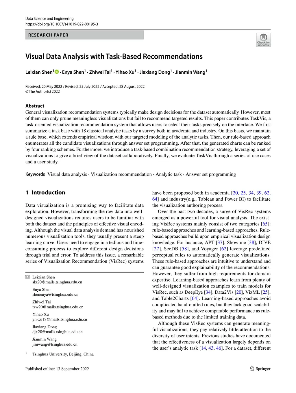 General visualization recommendation systems typically make design decisions for the dataset automatically. However, most of them can only prune meaningless visualizations but fail to recommend targeted results. This paper contributes TaskVis, a task-oriented visualization recommendation system that allows users to select their tasks precisely on the interface. We first summarize a task base with 18 classical analytic tasks by a survey both in academia and industry. On this basis, we maintain a rule base, which extends empirical wisdom with our targeted modeling of the analytic tasks. Then, our rule-based approach enumerates all the candidate visualizations through answer set programming. After that, the generated charts can be ranked by four ranking schemes. Furthermore, we introduce a task-based combination recommendation strategy, leveraging a set of visualizations to give a brief view of the dataset collaboratively. Finally, we evaluate TaskVis through a series of use cases and a user study.