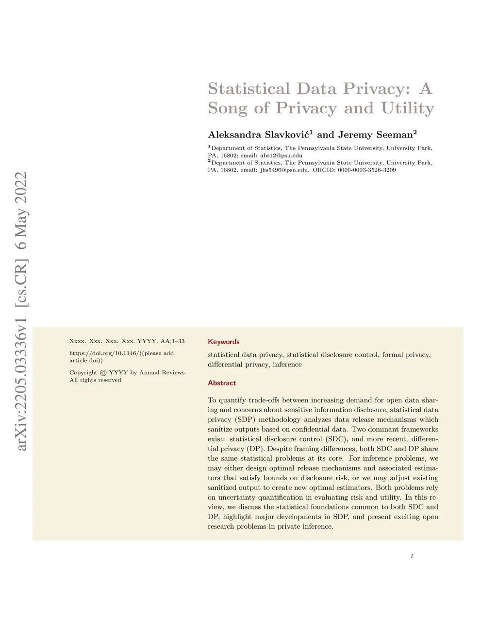 To quantify trade-offs between increasing demand for open data sharing and concerns about sensitive information disclosure, statistical data privacy (SDP) methodology analyzes data release mechanisms which sanitize outputs based on confidential data. Two dominant frameworks exist: statistical disclosure control (SDC), and more recent, differential privacy (DP). Despite framing differences, both SDC and DP share the same statistical problems at its core. For inference problems, we may either design optimal release mechanisms and associated estimators that satisfy bounds on disclosure risk, or we may adjust existing sanitized output to create new optimal estimators. Both problems rely on uncertainty quantification in evaluating risk and utility. In this review, we discuss the statistical foundations common to both SDC and DP, highlight major developments in SDP, and present exciting open research problems in private inference.