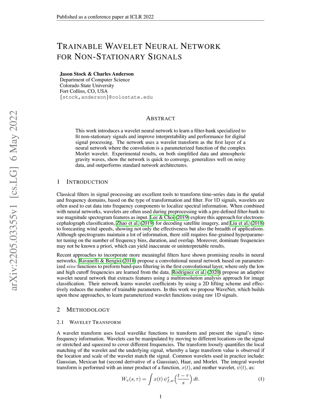 This work introduces a wavelet neural network to learn a filter-bank specialized to fit non-stationary signals and improve interpretability and performance for digital signal processing. The network uses a wavelet transform as the first layer of a neural network where the convolution is a parameterized function of the complex Morlet wavelet. Experimental results, on both simplified data and atmospheric gravity waves, show the network is quick to converge, generalizes well on noisy data, and outperforms standard network architectures.